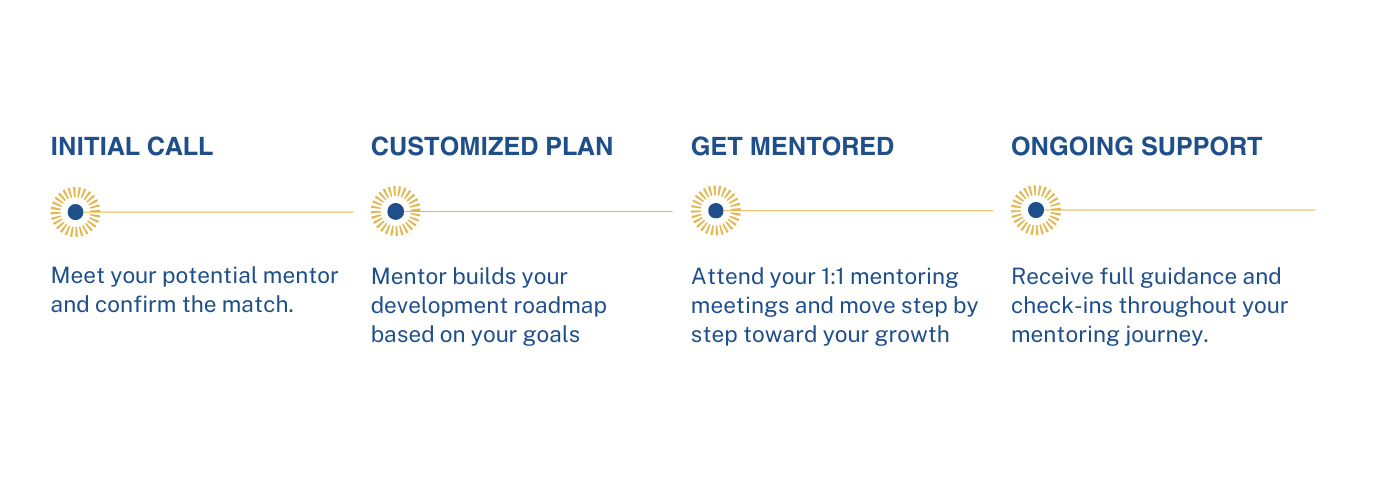 Our mentoring programs connect you with senior professionals who’ve already walked the path you’re building.